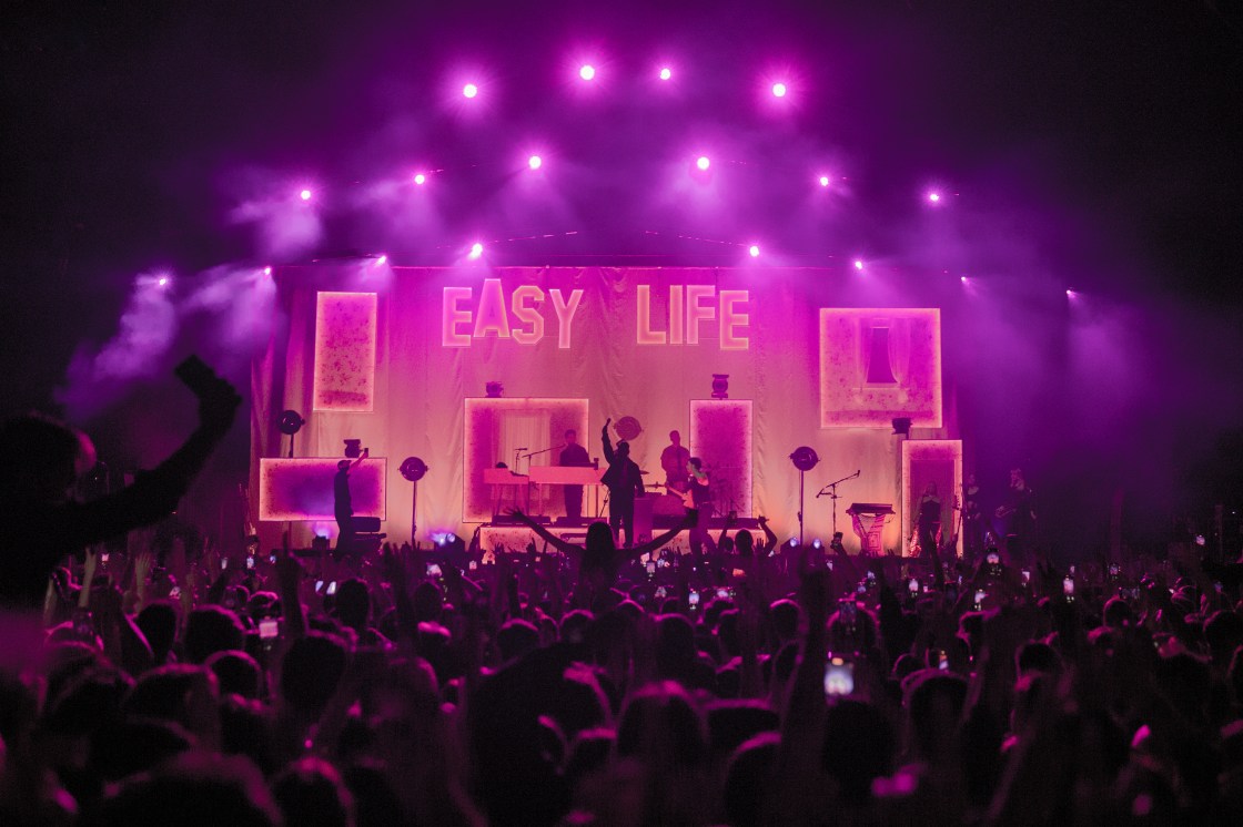 After what felt like no time at all, the moment had come for Easy Life to put on the show of their lives. Donning matching leather jackets and hats, which can be purchased as part of their merch, they went right into what they know best with the funky ‘Growing Pains’ and ‘Daydreaming’ as openers.