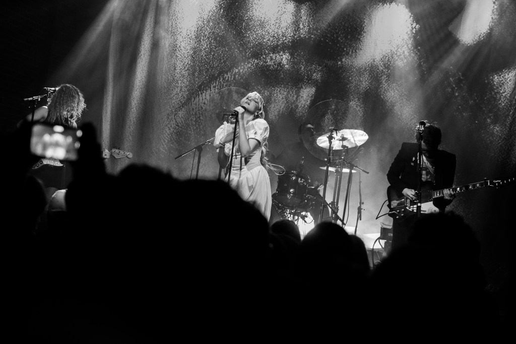 The show’s setlist blended the old with the new, spanning tracks from their self-titled debut album and their most recent EP ‘Devotion’, which was released earlier this month. They opened and closed with fan favourites ‘Blonde’ and ‘Tired Boy’ – the latter being the song that first introduced them to the world, and which Turner humbly credited as “the reason we’re all here tonight”. Watching Turner’s live interactions with fans felt both heartwarming and sincere – she leaned down several times to sing lyrics directly to or with people in the crowd, sharing a moment and holding hands. “Wow, she looks like a Barbie!”, one person next to us whispered to their friend when she first set foot on stage – and they weren’t wrong. Turner’s stage presence was divinely feminine and mesmerising. Midway through the set, Newell took the mic to introduce the full band, including their session musicians, and where they were from. He stood out not just as the only Brit on stage but as one of the most eccentric British men we’ve ever encountered – animated, humorous, and slightly chaotic in the most charming way. The duo’s chemistry on stage was undeniable – Turner, with her ethereal voice contrasted perfectly with Newell’s almost unpredictable guitar work. At times, it felt like watching two different worlds trying to meet halfway, but somehow they always did, right at the perfect moment in the perfect spot.