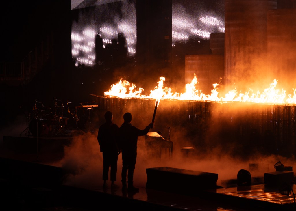 The fun, however, doesn’t last forever, as we hear a loud boom racing through the venue at the end of the track, and drummer Dun suddenly emerges at the back of the pit, having only just been hitting the drums on the main stage bare seconds ago (or shall we say his double). It’s then that the lore, the story the band has been working on for more than a decade, really moves into the spotlight. At this point, the duo are no longer the talented musicians but rather the characters they have so meticulously crafted – Joseph as Clancy, Dun as the Torchbearer, with the latter now walking through the crowd to Joseph’s b-stage, flaming torch in one hand, and what has been named the “Clancy jacket” in the other. To fully explain the lore would take days (click here to read more about it or watch the video below), but what’s most important to know is that at all previous shows, Joseph always took the jacket – sometimes after a bit of hesitation and the encouragement of the chanting fans – but this time is different. Holding onto the Clancy stole around his neck, Joseph takes no notice of Dun standing next to him and walks off the stage, leaving the drummer behind, before raising the stole to his face, covering his eyes and disappearing into the darkness. A surge of screams shakes the packed venue, most fans in pure shock at what had just happened, while Dun walks back to the main stage by himself and watches as Dema, the city of their storyline, goes up in flames. It’s the first time the band has gone off-script for the lore-heavy parts of their show, and while many fans had speculated that something special might happen on the closing night, a real-life playout and continuation of the saga had not been written on anyone’s cards – even less so the fact that it was all hinting at the news that would be revealed just a week later.